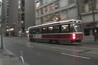 | Episode 23: Infinity Transit Odyssey Part 4 - Toronto Chicago Denver Beginning in late September 2005, I took a rail trip in which I visited eleven cities and rode transit in all of them. I had bought a North America pass from Amtrak and Via rail. This pass allows virtually unlimited travel by rail in the U.S. and Canada for 30 days. In this fourth episode about my travels, I take the train from Montreal to Toronto on the weekend of Canadian Thanksgiving, so the train is crowded. It is a rainy day, and I make a few animations and shoot some rainy windows on the six hour trip. I am only in Toronto for the evening, and a wet evening it is. I take a walk around the center of the city and videotape the Toronto streetcars. I also took a short subway ride, but I did not tape it. The next day I return to Toronto's Union Station and catch a train to Buffalo. In Buffalo I have a ten hour layover while I wait for a train to Chicago, but meet a pair of women from Germany and a train observing club, and my new friends help me pass the time. In Chicago I visit my sister and her family for a short visit, and then take the afternoon and night train ride from Chicago to Denver. That night on the train I have strange dreams in part promoted by a strange lumpy man sitting in front of me who wears a powder blue sweat suit. In Denver I stay with old friends and video tape the light rail trains and the buses on the bus mall downtown. Then I catch an express bus to Boulder to visit some friends of mine who live there. Watch a clip from show 23. Upcoming episodes will take me on a trip in the shape of an infinity sign. Back to On Transit home Visit Sloppy Films Visit A Carfree Home Page Visit Transit for Livable Communities Visit Metro Transit |