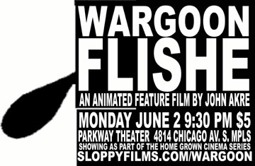 Wargoon Flishe was called, "hypnotic and completely overwhelming," by City Pages writer John Behling, who said it included "mind-bending feats of creativity." In Northeast Beat, writer Dan Haugen said, "the animation style is bizarre and nontraditional, to say the least." And Chuck Olsen of Minnesota Stories called it an "animated masterpiece." Wargoon Flishe was an official selection in the Calgary Fringe Film Festival and was shown on August 12. It also showed as part of the Home Grown Cinema Series at the Parkway Theatre on June 2, 2008. Wargoon Flishe is both the name of the movie and the name of the central heroic character of it. Wargoon is a hero out of ancient myths, but one slightly updated to this age of commerce and mass media. He rises to greatness by virtue of cannibalism and arrogance. His story is a movie like a cave painting drawn on magazine advertising. Animator John Akre used a variety of animation techniques to create the movie. He also narrates the film, provides the voices for all the characters, and voices the sound effects. Here's what the City Pages had to say about Wargoon Flishe. Northeast Beat interviewed me about my animation techniques. Minnesota Stories featured the Wargoon Flishe trailer. I now have a big box of copies of Wargoon Flishe. Email me if you are interested in one. I would like to thank everybody who came out to the special screening of Wargoon Flishe at the Ritz Theater in Northeast Minneapolis. This screening was a fundraiser for the Ritz, and nearly $600 was raised that night! A special thanks goes out to Mike Romens! |